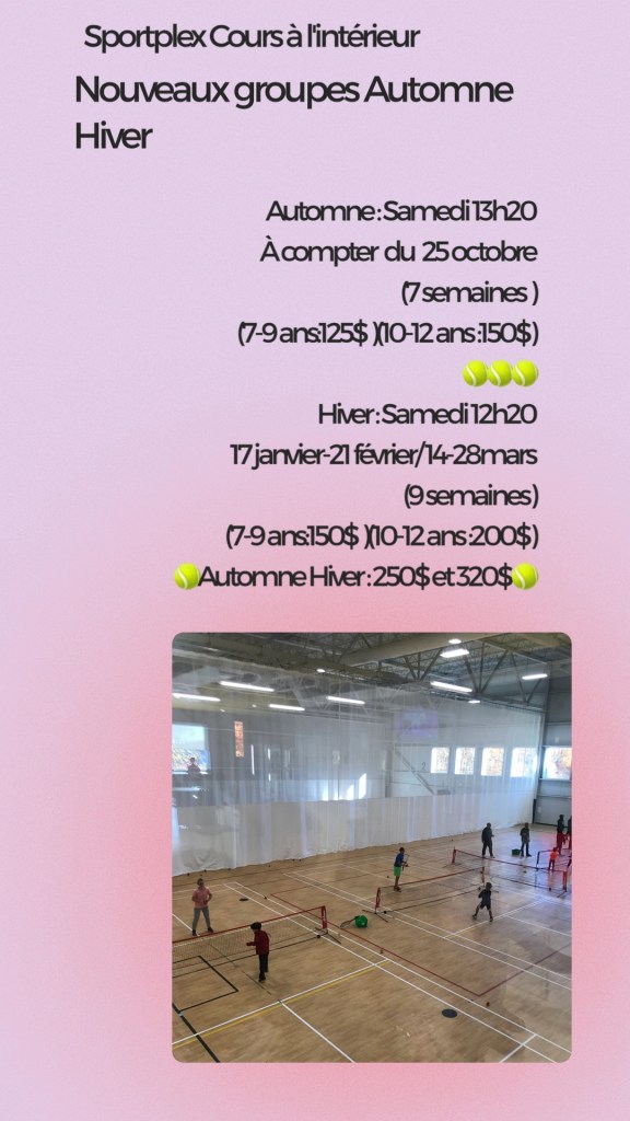 Pré-Inscriptions : À compter de lundi 4 août à 9 h par courriel : tennismonteregie@gmail.com / pour élèves déjà inscrits et sur la liste d’envoi.